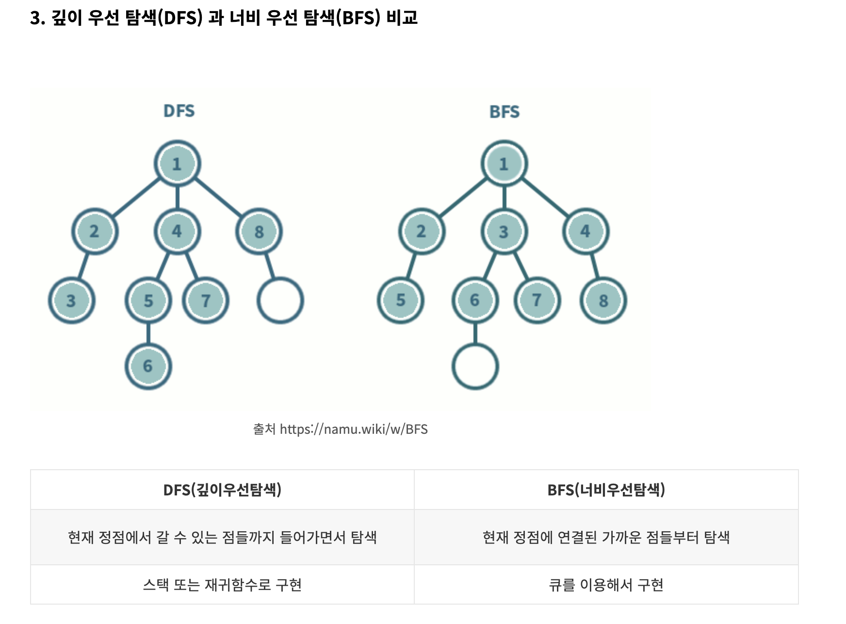 깊이 우선 탐색인 (DFS) 와 너비 우선 탐색 (BFS) 문제가 나올 경우이다.