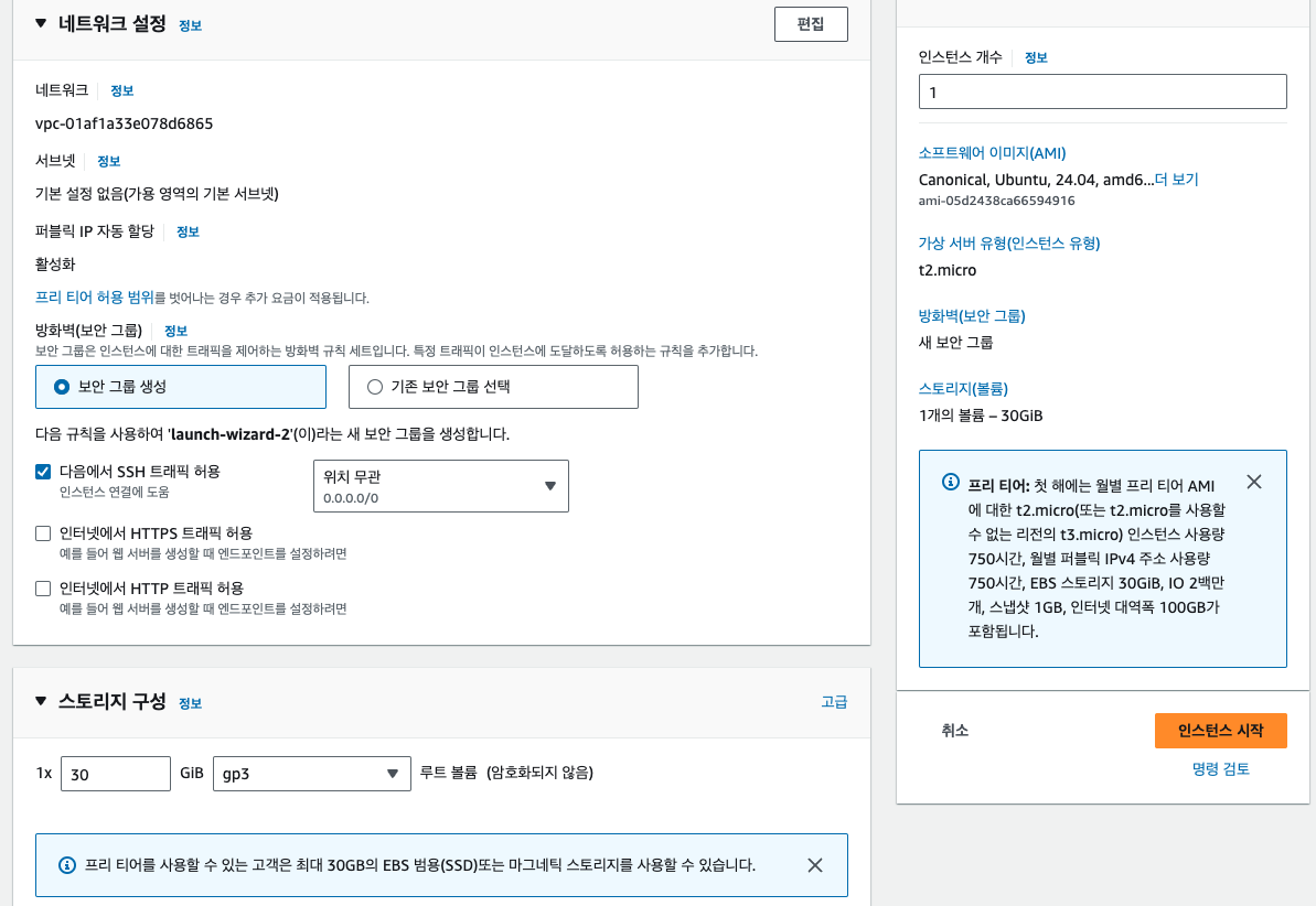1) AWS 콘솔에서 EC2 인스턴스를 생성합니다. (인스턴스 시작 클릭)