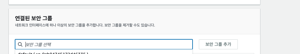 -보안 그룹 선택 클릭 후 - 자신이 만든 보안 그룹 선택 (여기서는 server_test_group)
