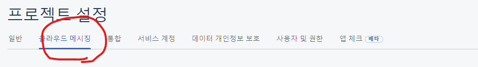 그 뒤에 상단에 있는 클라우드 메시징 탭에 들어가면 자신의 서버키를 확인할 수 있습니다 . 그거 복사해서