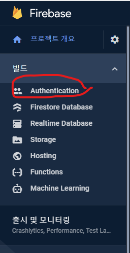 화면 중앙에 나타나는 자신의 프로젝트를 클릭해주시고 ~ 그 다음에 Authentication 클릭 !
