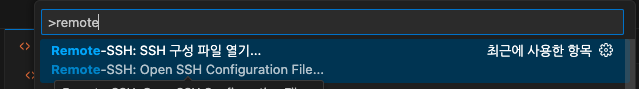 F1 -> 'remote-ssh'검색 -> SSH 구성파일 열기(Open SSH Configuration File)
