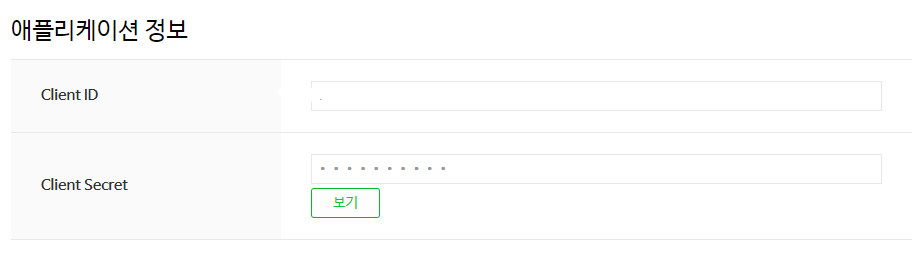 애플리케이션 등록이 끝났다면 다음과 같은 화면이 나오게 되는데 여기서 ClientId와 Client Secret 키들을 복사 해놓도록 하자.