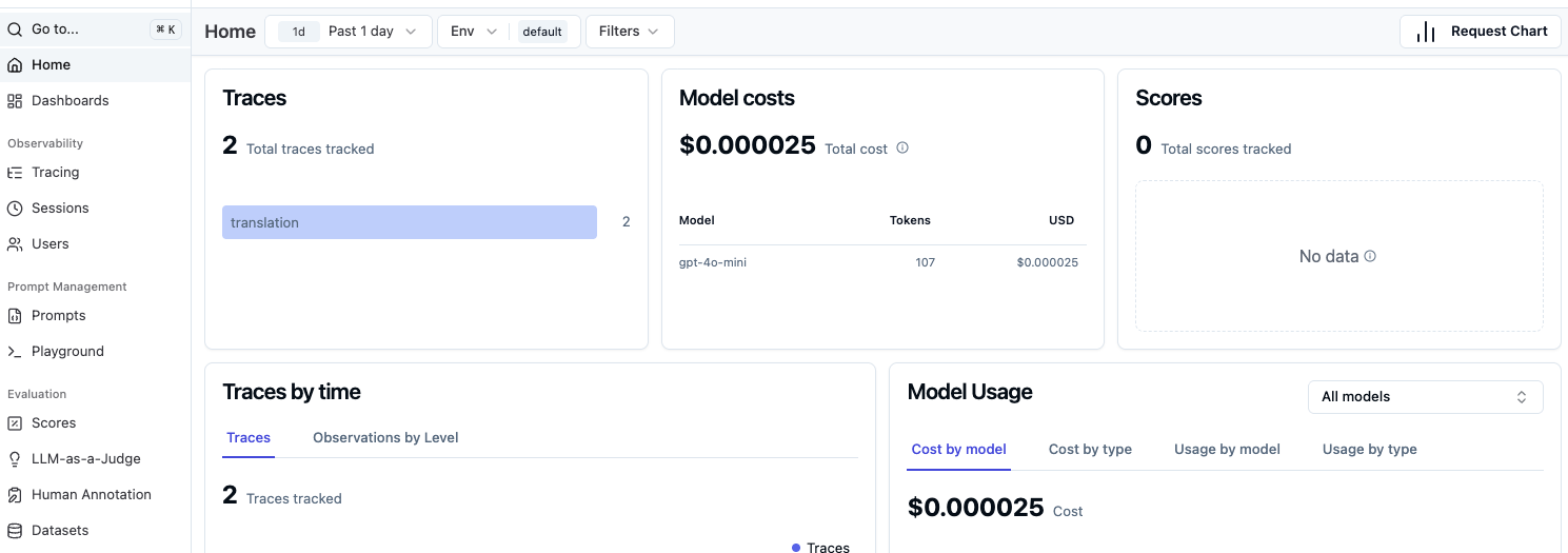 최종 결과물: 모든 AI 호출을 추적하고 비용/성능을 실시간으로 확인할 수 있는 번역 API