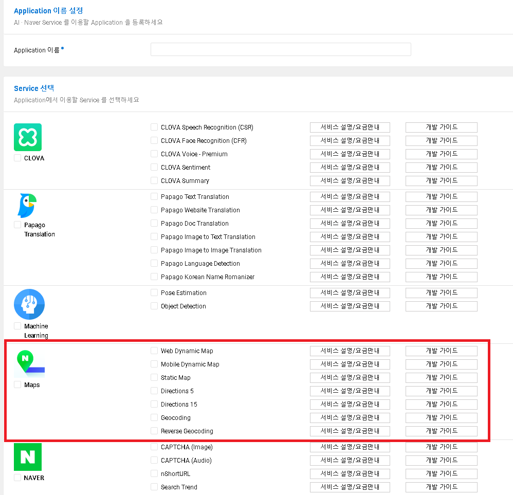 .해당 페이지에서 로그인을 한 뒤 서비스 -> Application Service -> Maps로 들어가 준다.