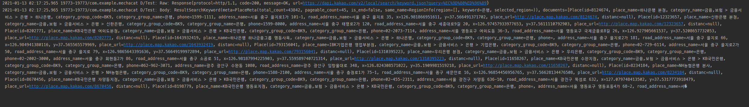 카카오에서 제공하는 API 중에는 REST API를 통한 장소 검색 기능이 있다. 이 글에서는 Retrofit 라이브러리를 이용해서 API 서버와 통신해 장소 검색 결과를 가져오는 방법을 적는다.