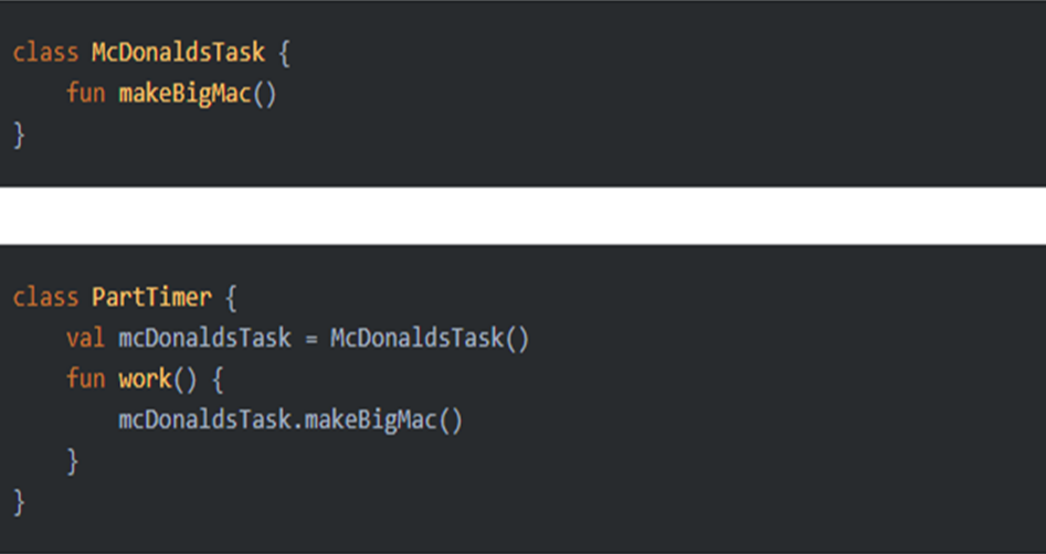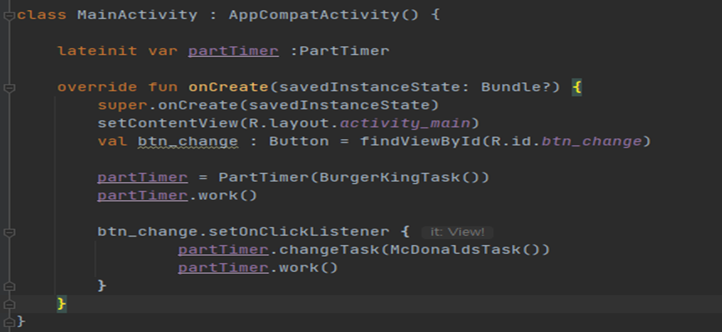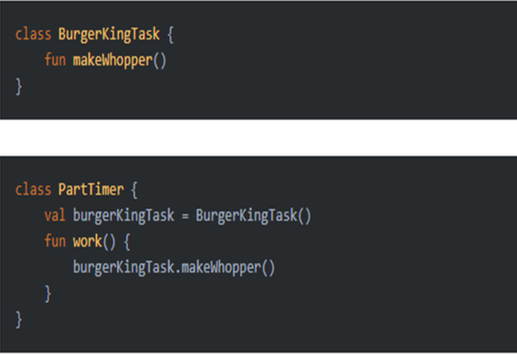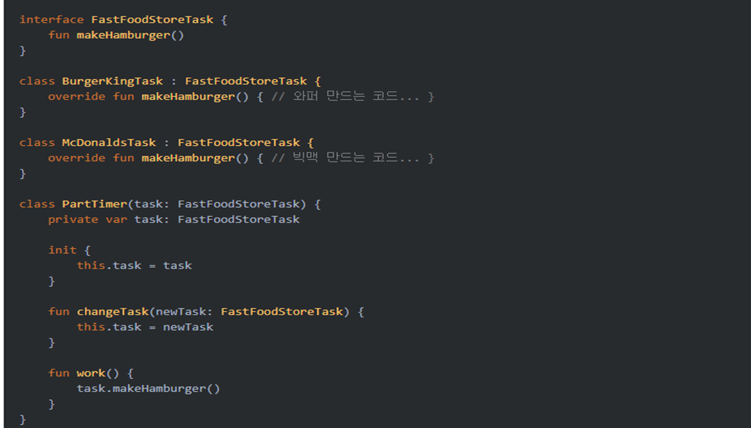 지금 보는 코드를 쉽게 설명을 해보자면 PartTimer 는 지금 버거킹에서 일을 하는 중 입니다.