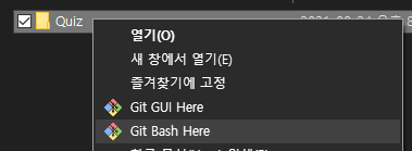 4. 업로드하고 싶은 프로젝트의 폴더를 마우스 우클릭 > Git Bash Here